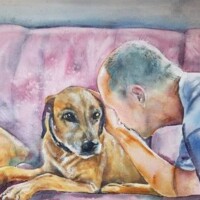 This is me with my basset hound Roxy.  As a pet owner, I understand the love we have for our pets.  They really are a part of our families.  I’m able, with your help, to capture the personality and beauty of your beloved pet in a watercolor pet painting.